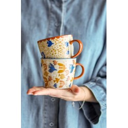 Kubki Bloomingville dostępne są w zestawie dwóch sztuk i wykonane są z kamionki z nadrukowanym motywem ptaków w ciepłych kolorach. Ich okrągły kształt tworzy spokojny i dekoracyjny efekt – idealny do kawy i herbaty.