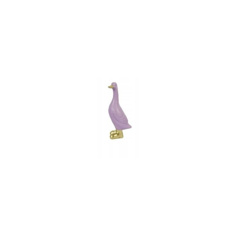 Figurka kaczki w kolorze fioletowym ze złotym dziobem i w złotych kaloszach, renomowanej holenderskiej firmy Decostar.